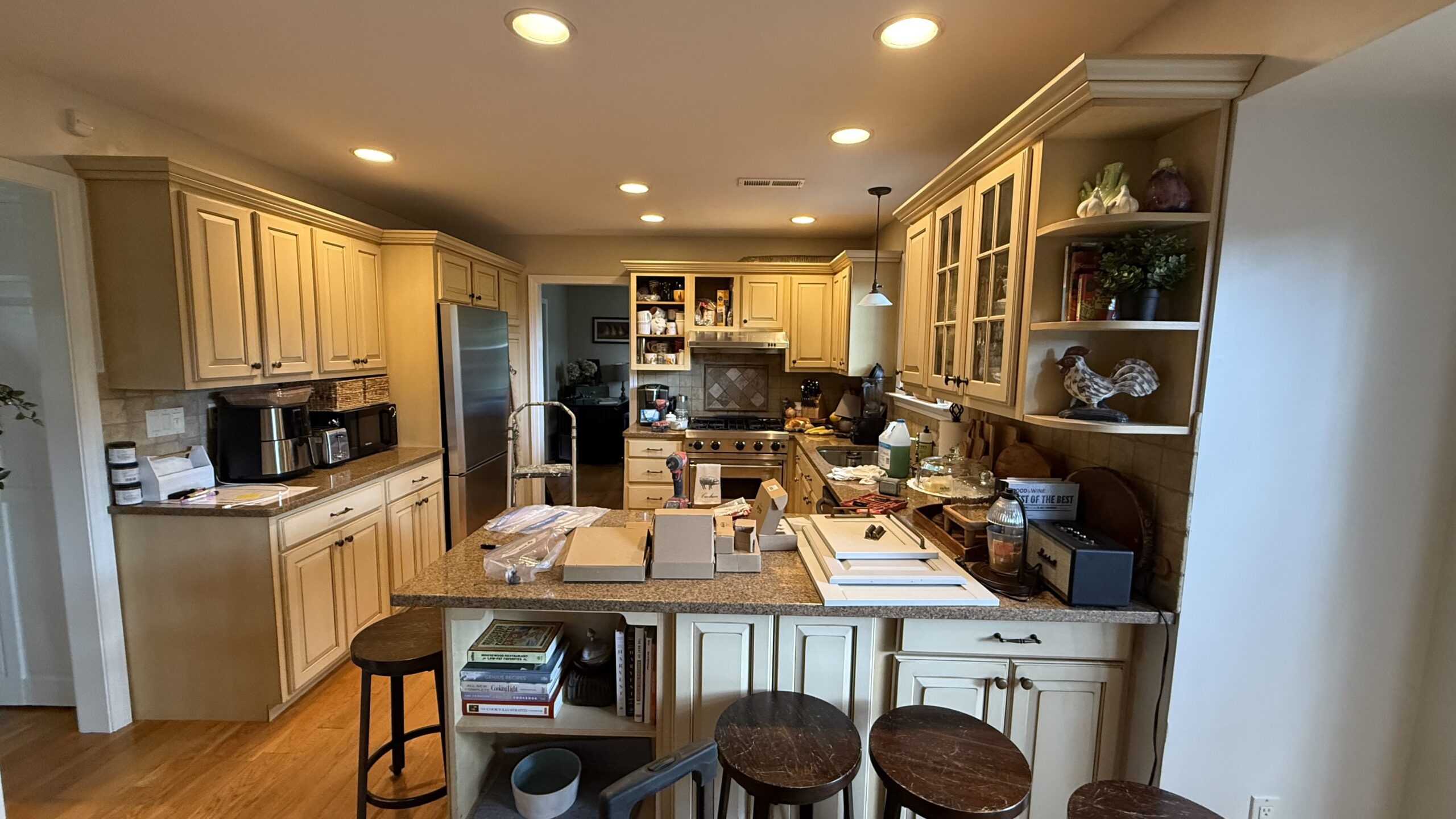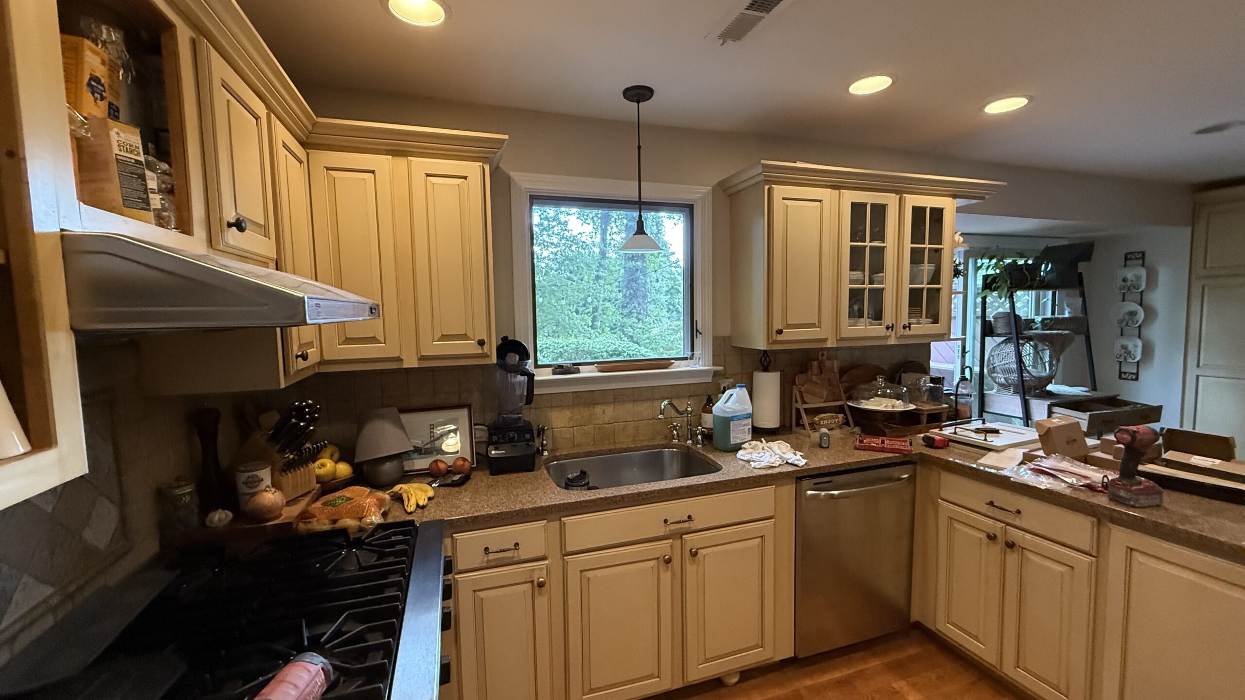 What a spectacular outcome! This was definitely a fun project. Cabinets doors had a glaze that made this kitchen outdated.