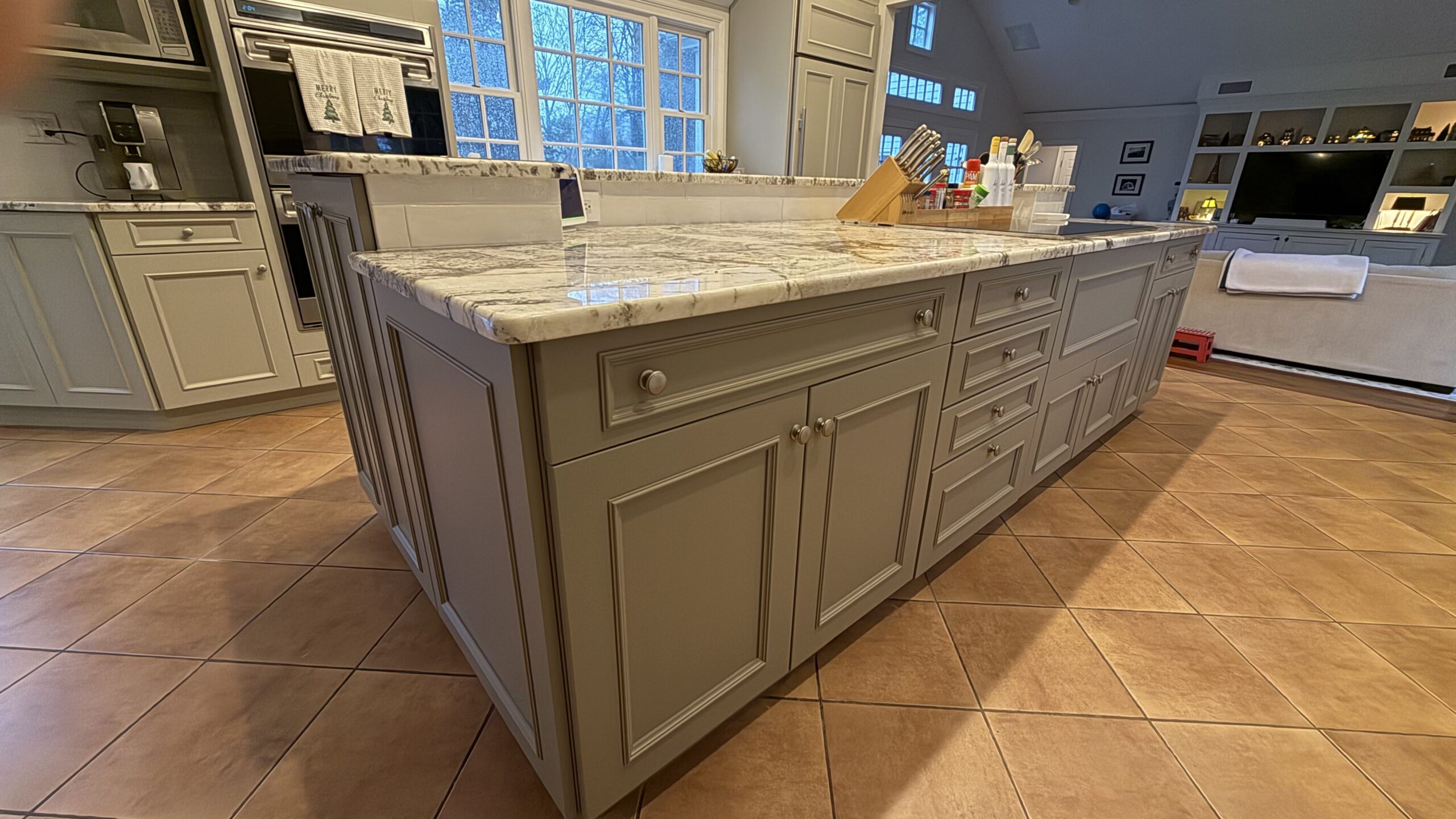 Beauty by the water! This kitchen island came out absolutely splendid. Client wanted to brighten up this area of the house. We used Farrow & Ball Parma Gray, a real winner!