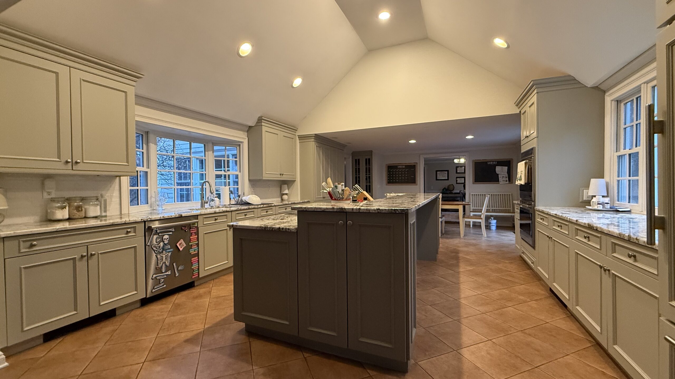 In addition, this Wolcott CT kitchen was reborn with a bright, vibrant and a sophisticated blue-gray anchor island in the center. The use of the Milesi 2K system ensures that the Simply White remains vibrant without yellowing on all cabinets. Farrow & Ball Parma Gray on the island will retain its depth for years to come.